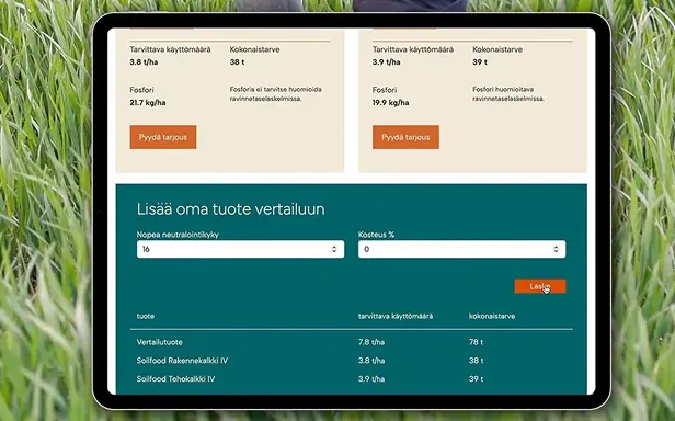Vertaa kalkkeja ja hehtaarikustannuksia kalkkilaskurilla