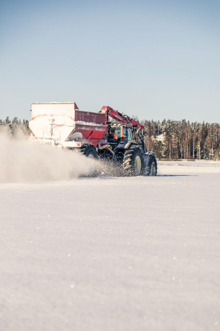 Suomessa perinteisesti kalkitaan talvella – ja miksei niin kannattaisi tehdä jatkossakin. Hyvänä talvena talvikalkit voidaan levittää lähes maahan kuin maahan, myös pehmeämmille, multavammille lohkoille ja turvemaillekin. Kun maa on jäässä, päästään lähes kaikille peltolohkoille kalkkikuorman kanssa ilman renkaan jälkiä tai vaurioita ja tiivistymiä pellossa. Poikkeuksena on tulvapellot, joista kalkki voi huuhtoutua vesien mukana pois.