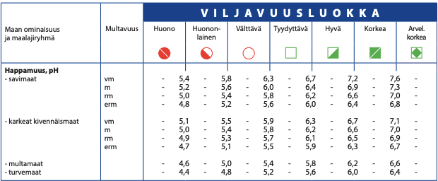 Peltomaiden happamuus vaikuttaa ravinteiden liukoisuuteen maassa ja siten kasvien ravinteidenottoon. Lannoituksen ja kalkituksen suunnittelu on hyvä perustaa säännöllisiin viljavuustutkimuksiin. Yleinen tavoite-pH on multavuudesta riippuen savimailla noin 7 ja karkeilla kivennäismailla noin 6,5 sekä eloperäisillä mailla noin 6.