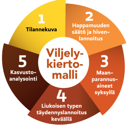 Soilfoodin viljelykiertolannoitusmalli on kehitetty Tyynelän tilan viljelymallin perusteella. Viljelykiertolannoitusmallin tarkoituksena on sovittaa maanparannus- ja lannoitustoimenpiteet kukin parhaaseen mahdolliseen vaiheeseen viljelykiertoa sekä kasvukautta. Maanparannustoimet, joissa levitetään suuria massoja maanparannuskuituja, tuhkia tai kalkkeja, pyritään ajoittamaan mahdollisimman hyvin kantavalle pellolle esimerkiksi lopetettaessa nurmia tai aikaisin korjattavien kasvien sadonkorjuun jälkeen. Näillä toimilla saadaan peltoon usein eloperäisiä ravinteita koko viljelykierron ajalle. Liukoiset ravinteet täydennetäänkin kasvukauden alkuvaiheessa mieluiten kasvien oraille tai taimille. Edelleen kasvukauden aikana voidaan tehdä täydennyslannoitusta mittaamalla todettuun tarpeeseen.